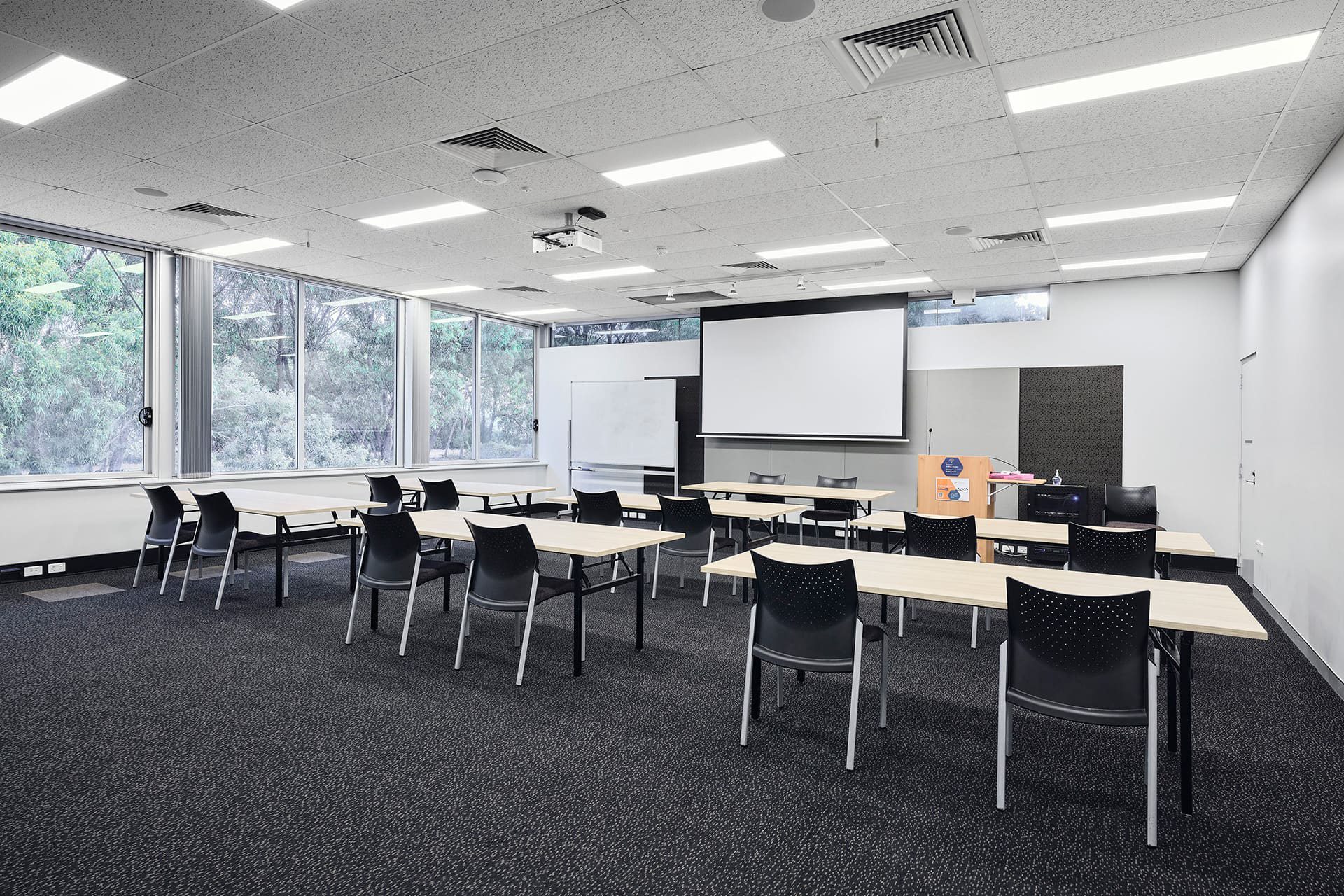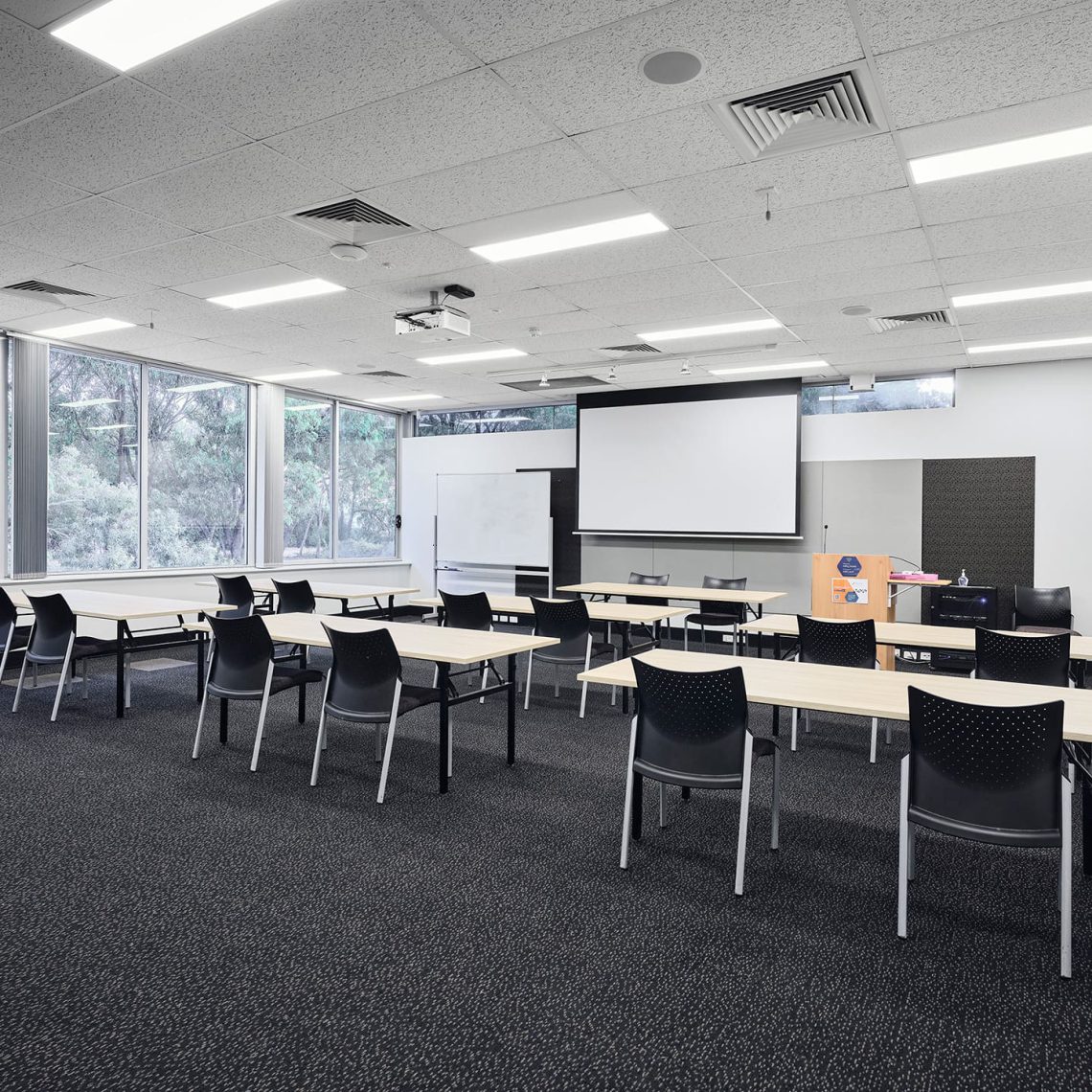 The Garden Island Room is our second-largest function space, accommodating up to 80 guests in a theatre-style layout. Featuring a wall of south-facing windows, this room offers abundant natural light and views of the lush, tree-lined surroundings.
